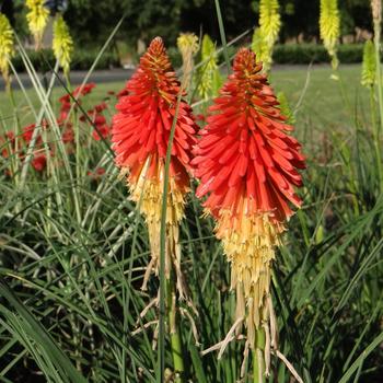 Chez certaines variétés, la teinte évolue au fil de la floraison, produisant un effet bicolore ou dégradé. Cette particularité a valu aux Kniphofia leur surnom de "Tison de Satan".