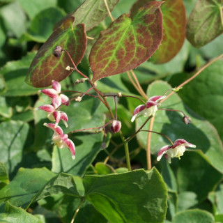 Quick View Liste de souhait Ajouter au panier EPIMEDIUM rubrum Touffe vigoureuse au jeune feuillage vert lavé de brun, rouge brun en automne. Fleurs à sépales rouges, pétales blancs, éperons blancs. 5,09 € Prix 40cm