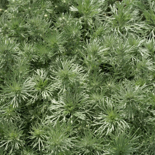 Feuillage très fin, argenté, formant un tapis. Fleurs insignifiantes. Excellent couvre-sol.