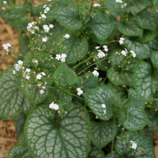 Quick View Liste de souhait Ajouter au panier BRUNNERA macrophylla 'Mr Morse' Feuillage vert panaché argenté, floraison blanche. 7,10 € Prix 40cm