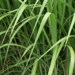 Feuillage étroit marqué au centre sur toute la longueur d'un filet argenté. Épis plumeux, argentés très haut au dessus du feuillage.