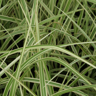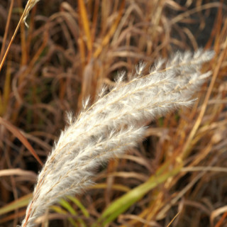 Rhizomateux. Feuilles marquées d'une rayure brune sur la longueur. Inflorescence argentée, soyeuse. Supporte aussi les sols légers, assez secs.
