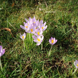 Crocus à grandes fleurs d'un coloris bleu, violet ou mauve.
