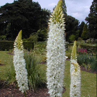Vivace formant une rosette de feuilles basales linéaires à lancéolées de 20 à 30 cm. En mai-juin, la hampe florale de 70 à 100 cm de long apparaît et permet à cette plante de culminer à plus d'1,50 m. Espèce à la floraison la plus précoce parmi les EREMURUS. Floraison blanc pur.