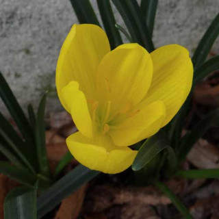 Fleurs jaune brillant, semblables à de gros crocus. Bordure, rocaille, auge, potée.