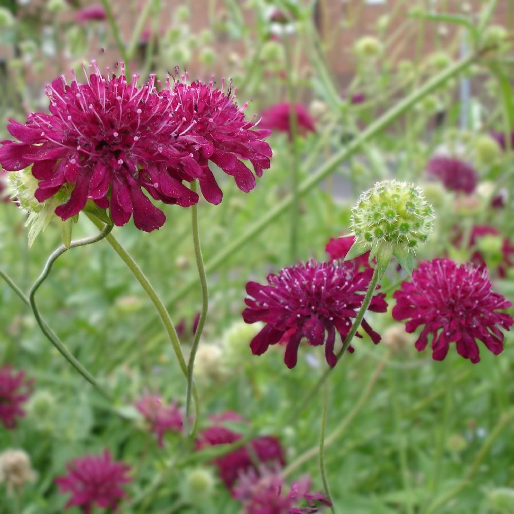 KNAUTIA macedonica est une plante vivace formant de petites touffes de feuilles vertes d'où s'extirpent, à partir du printemps, d'innombrables fleurs rouge foncé à la couleur très ornementale. Ces magnifiques vivaces attireront de nombreux insectes, mais surtout de nombreux regards tant leur éclat est intense.