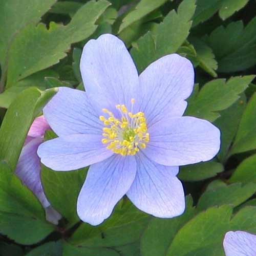 L'ANEMONE nemorosa 'Robinsoniana' est une plante vivace bulbeuse traçante, dont le feuillage palmé vert, disparaît après la floraison d'un beau bleu lavande pâle de 3 à 4 cm de diamètre. Elle pourra former un magnifique tapis de fleurs bleues dans votre jardin si vous la choisissez comme couvre-sol, à l'ombre de l'une de vos haies.