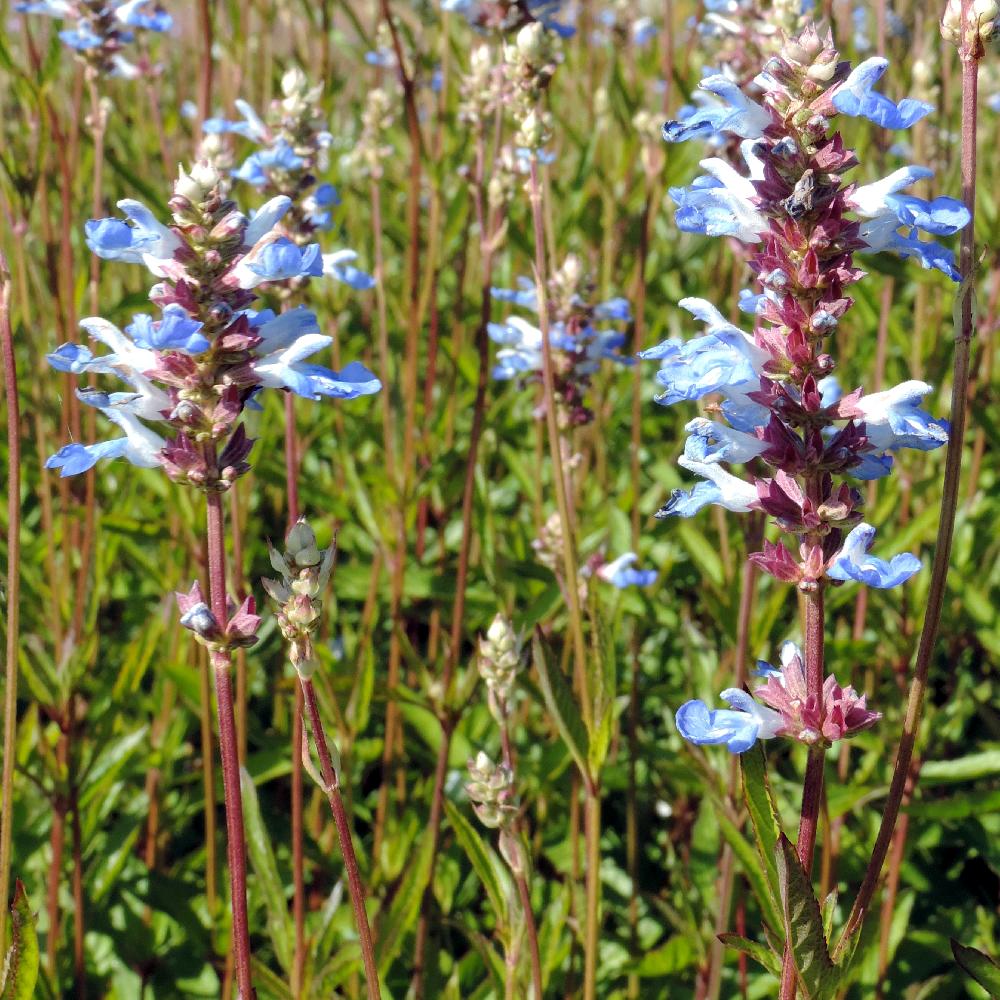 Florifères, de culture facile en sol ordinaire. Feuillage aromatique. En plus de leur floraison colorée, certaines possèdent un feuillage très décoratif. Fleurs bleu azur intense. La lèvre inférieure, bleu pâle, porte une macule blanche.
