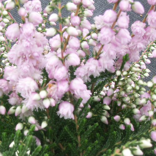 CALLUNA vulgaris 'County Wicklow' a un feuillage persistant vert sombre, devenant bronze pourpre à l'automne. Sa texture fine et son port plus ou moins rampant sont des caractéristiques, qui, en plus de sa floraison abondante, la rendent superbe. Ses fleurs sont doubles rose nacré. A planter en sols sableux, limoneux et acides.