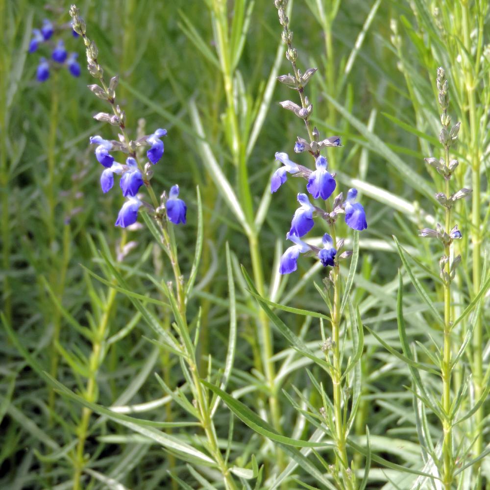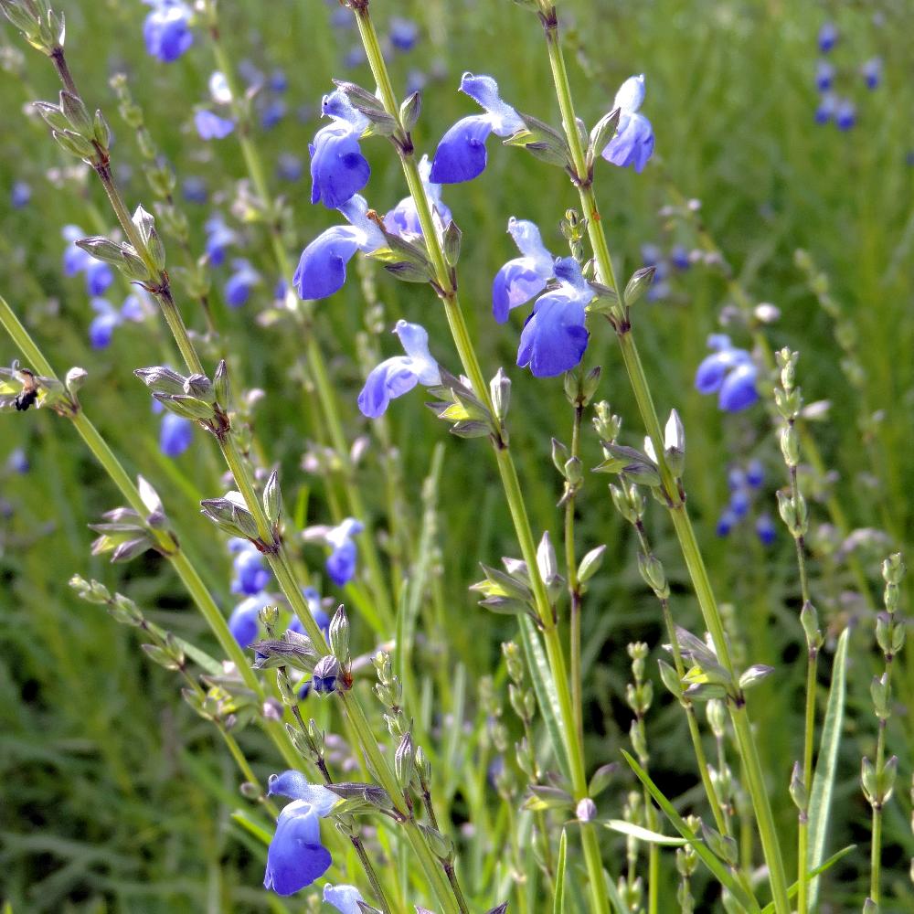 Sauge de rocaille qui aime les sols pauvres, pierreux et drainés. Floraison bleue. Feuilles vertes fines et allongées. Tiges hautes qui se couchent après une forte pluie.