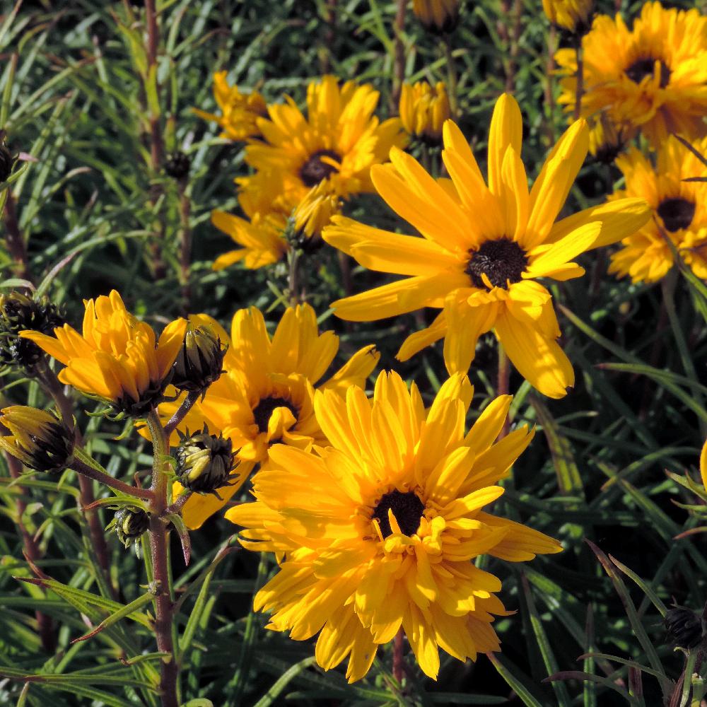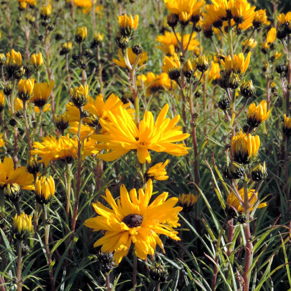 L’HELIANTHUS salicifolius 'Table Mountain' est une variété naine de tournesol vivace, à fines feuilles ressemblant à celles du saule. Compacte et florifère, elle forme un véritable plateau de fleurs jaunes à cœur brun, au-dessus du feuillage vert. Vigoureuse, c’est un atout lumineux pour vos massifs et vous pourrez également réaliser de beaux bouquets champêtres.