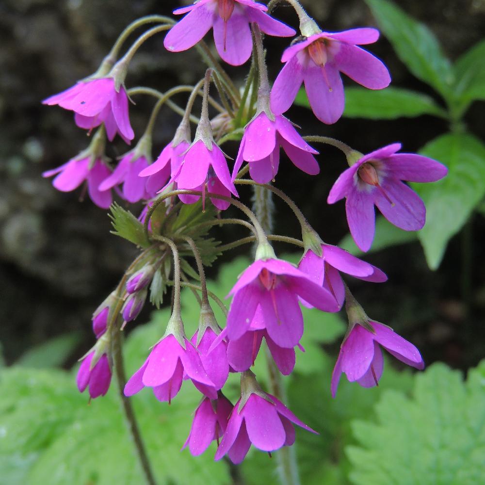 CORTUSA matthioli, renommée Primula matthioli, est une gracieuse vivace alpine qui poussent à l’abri des bois. Elle apprécie les endroits ombragés et humides, comme les bords d’un torrent ou la base de rochers suintants à la fonte des neige. On la trouve en France en Savoie, en limite de son aire de répartition naturelle. Elle demande des conditions de culture assez spécifiques pour s’épanouir, notamment un sol bien drainé, mais ne se desséchant pas. Elle supporte le calcaire. Ses feuilles arrondies et dentées présentent de longs pétioles velus. Elles sont rassemblées en une rosette dont émerge une tige florale velue, de 15 à 40 cm de haut, portant des fleurs rose violet, en forme de cloches retombantes.