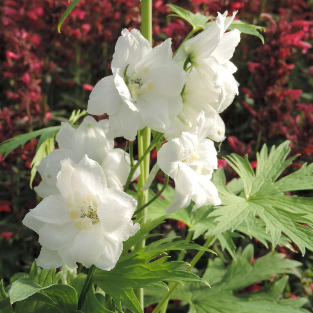 Nom botanique : DELPHINIUM 'Magic Fountain Pure White' (Elatum Group)